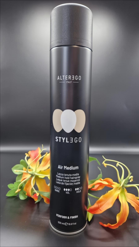 Alter Ego Style Go Air Medium is een haarspray met een medium hold die ondersteuning en flexibiliteit geeft aan elke stijl. Het maakt het haar niet zwaar, maakt niet vochtig en is makkelijk uit te borstelen. Ideaal voor dynamische looks vol beweging.