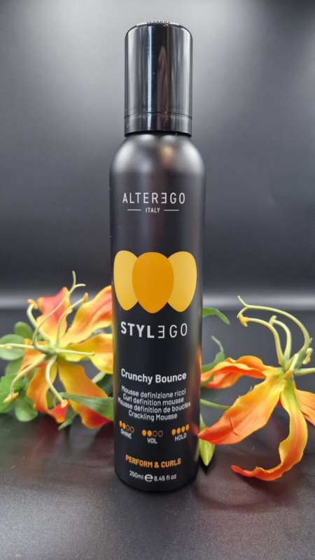 Alter Ego Style Go Crunchy Bounce is een unieke gel-tot-mousse formule die krullen en golven vormt met een stevige, gedefinieerde textuur. Biedt langdurige controle met een “crunchy” finish, voor krullen die mooi compact blijven, zelfs bij een hoge luchtvochtigheid.
